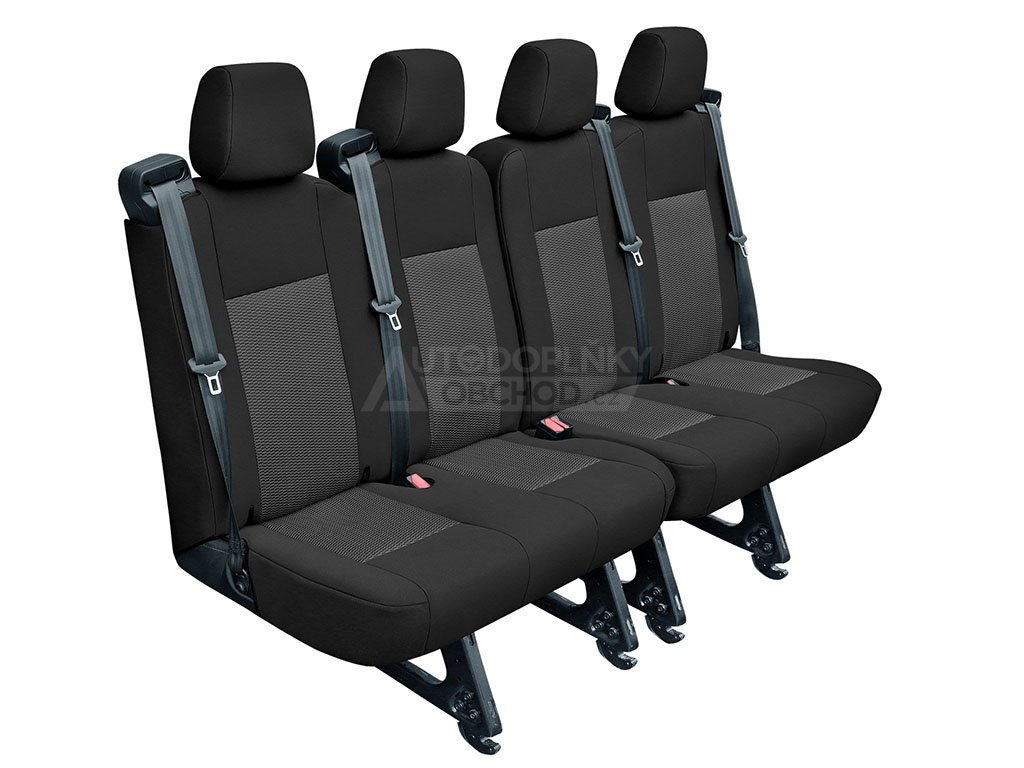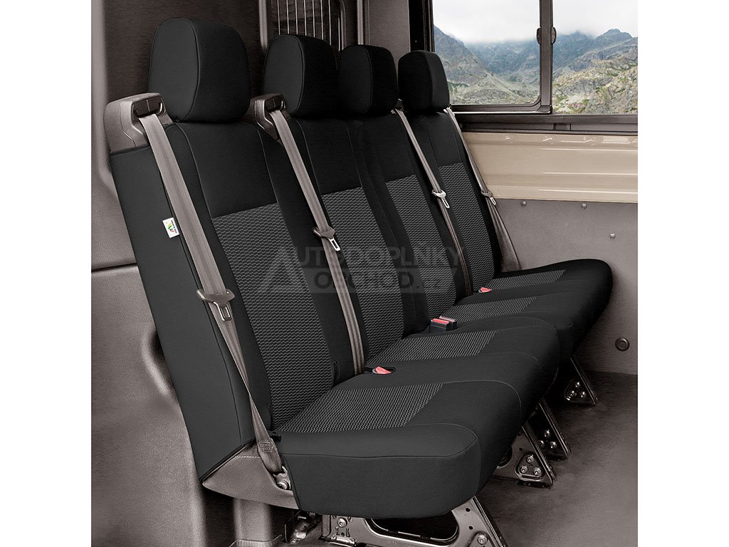 Kvalitní potahy vyrobené na míru dvou zadním dvojsedadlům vozu Ford Transit 2014-2026 dvoukabina. Brání znečistění a okopání zadních částí sedadel. Ušité z kvalitního odolného materiálu se spodní vrstvou z PUR pěny. Vhodné pro vozy s bočními airbagy.