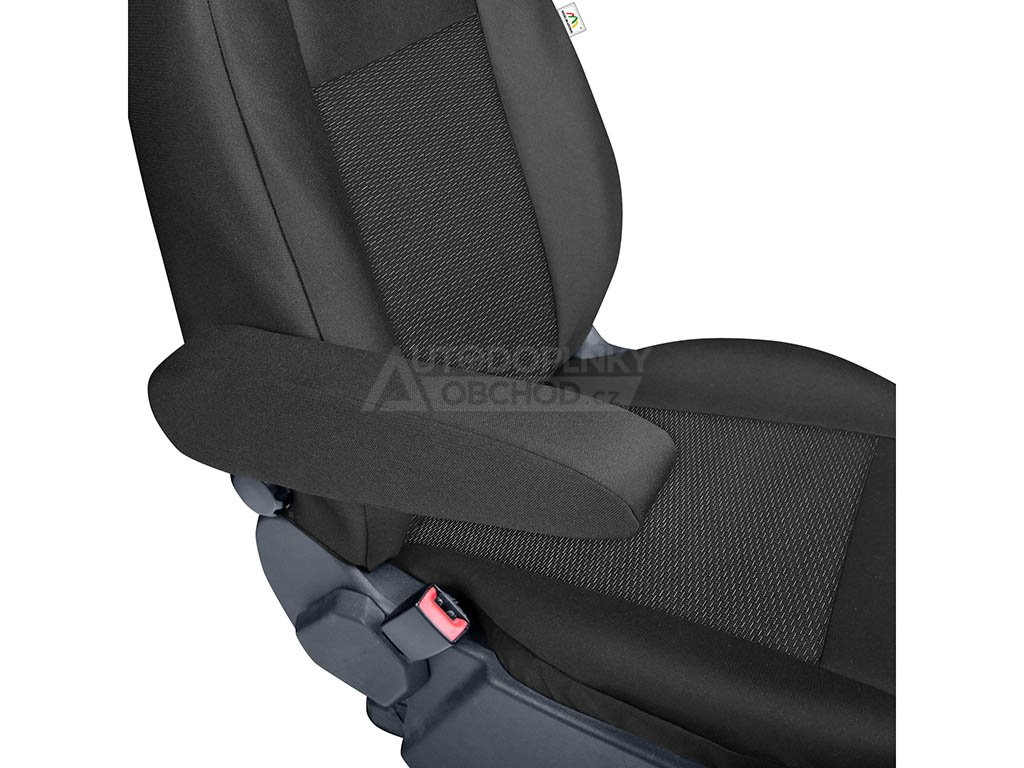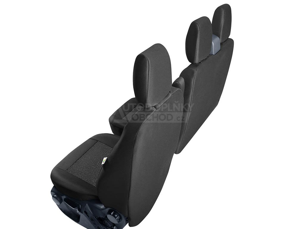 Kvalitní potahy vyrobené na míru předním sedadlům vozu Ford Transit 2014-2026 se stolkem v opěradle u spolujezdce. Brání znečistění a okopání zadních částí sedadel. Ušité z kvalitního odolného materiálu se spodní vrstvou z PUR pěny. Vhodné pro vozy s bočními airbagy.