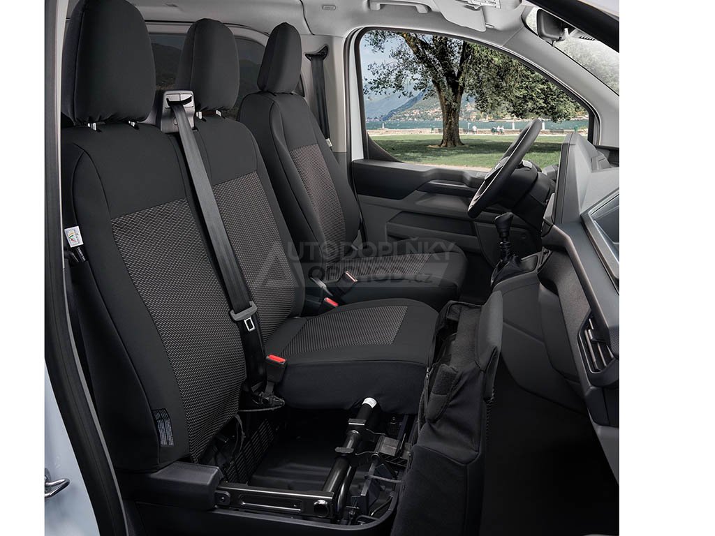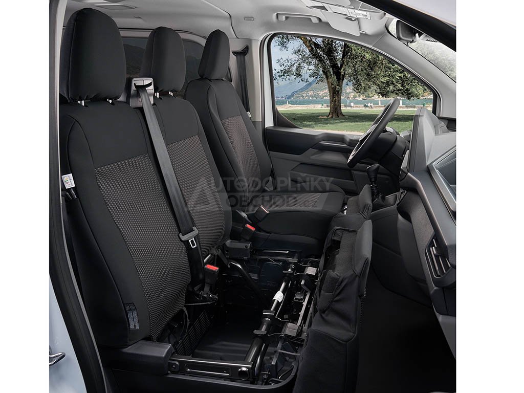 Autopotahy VW T7 Transporter 2024-2025 • přední 2 místa spolujezdec • stolek • dělený sedák