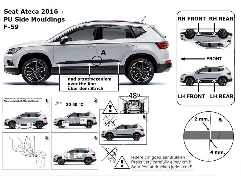 Přesné rozměry lišty dveří najdete ve fotogalerii, kde jsou i fotky bočních lišt, nainstalovaných na tomto modelu auta. V záložce Soubory je ke stažení podrobný návod a montážní schéma s umístěním bočních lišt na tomto autě.
