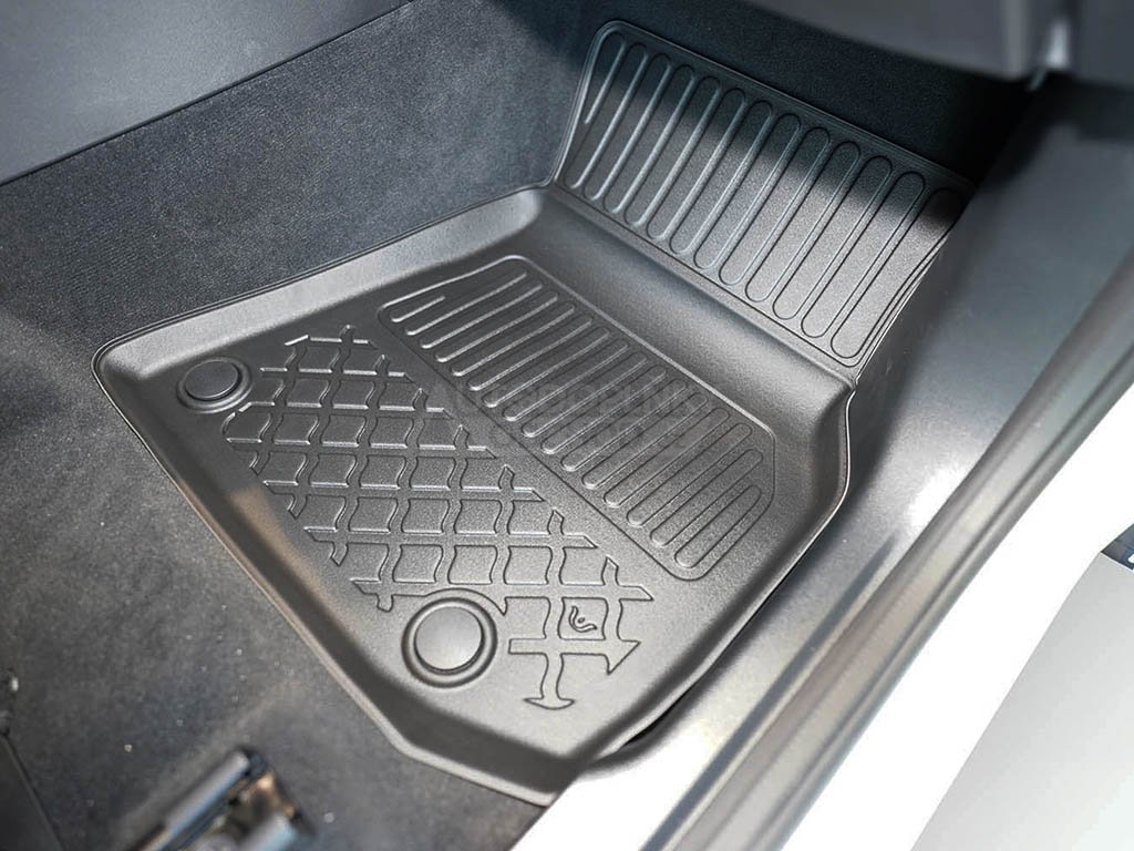 Přesně pasující autokoberce z pevnějšího a velmi odolného termoplastického materiálu s příměsí gumy využijete v jakémkoli ročním období, obzvláště pak od podzimu do jara. Velkou výhodou oproti čistě gumovým kobercům do auta je zvýšený 3 cm okraj, díky kterému i větší množství nečistot nebo vody ze sněhu neznečistí interiér vašeho vozu.