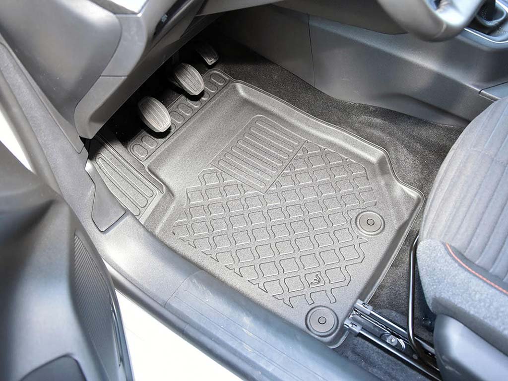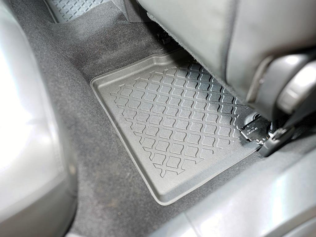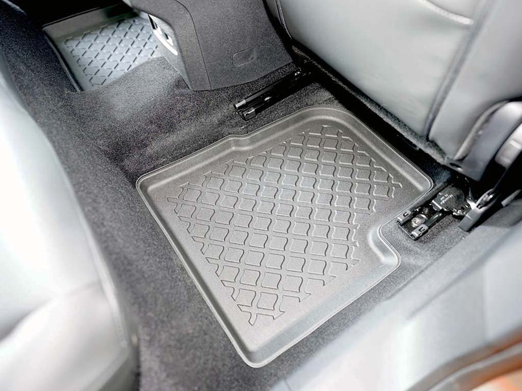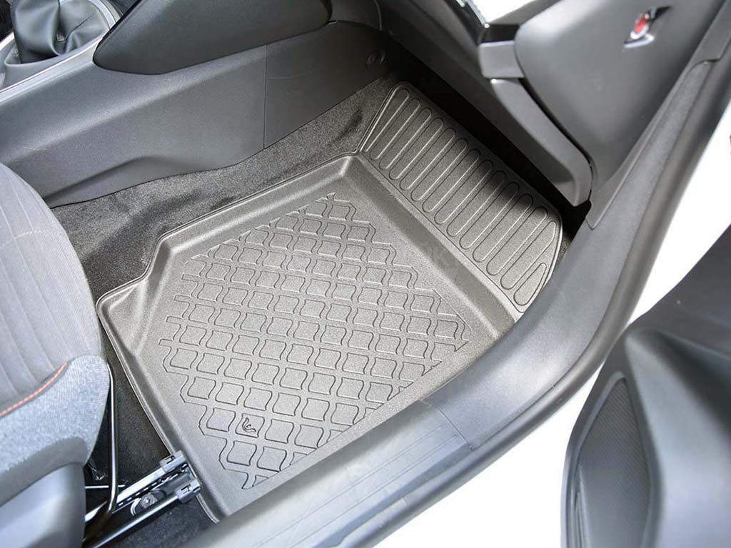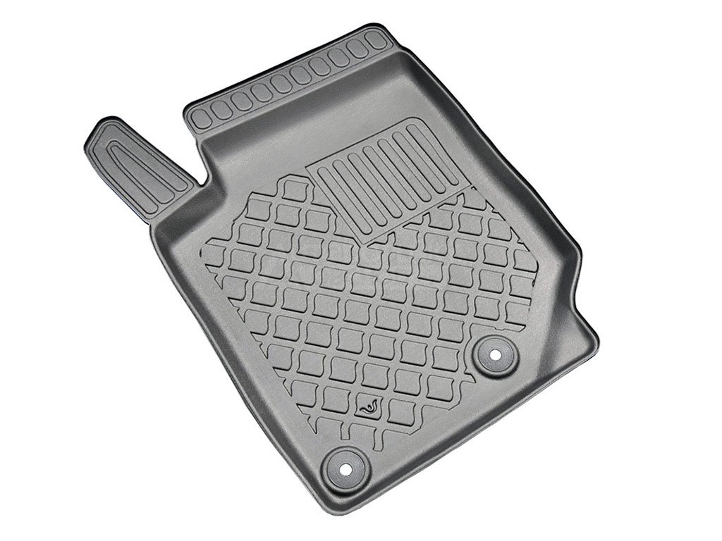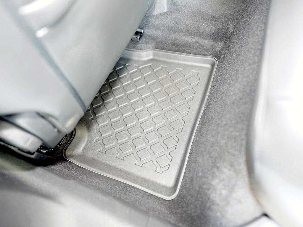 Přesně pasující autokoberce z pevnějšího a velmi odolného termoplastického materiálu s příměsí gumy využijete v jakémkoli ročním období, obzvláště pak od podzimu do jara. Velkou výhodou oproti čistě gumovým kobercům do auta je zvýšený 3 cm okraj, díky kterému i větší množství nečistot nebo vody ze sněhu neznečistí interiér vašeho vozu.