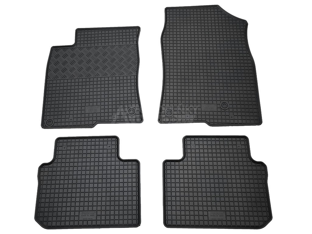 Přesně pasující gumové koberce pro Honda Civic XI 2022-2026 e:HEV. Sada čtyř kusů rohoží s jednoduchou instalací. Praktický doplněk s protiskluzovým profilem chránící podlahu auta před vodou, sněhem i prachem.