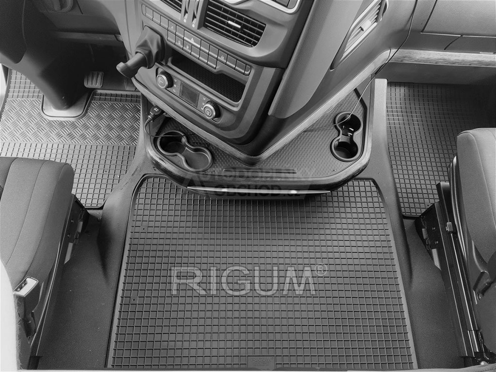 Přesně pasující gumové koberce pro IVECO S-Way 2019-2026. Sada tří kusů rohoží s jednoduchou instalací. Praktický doplněk s protiskluzovým profilem chránící podlahu auta před vodou, sněhem i prachem.