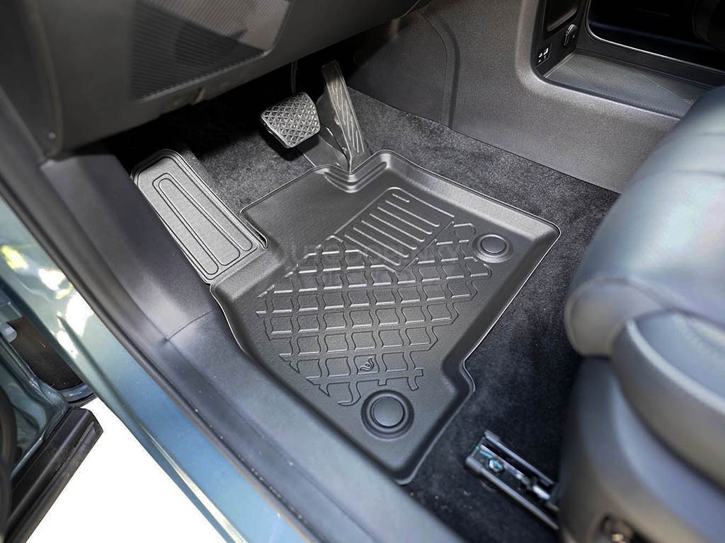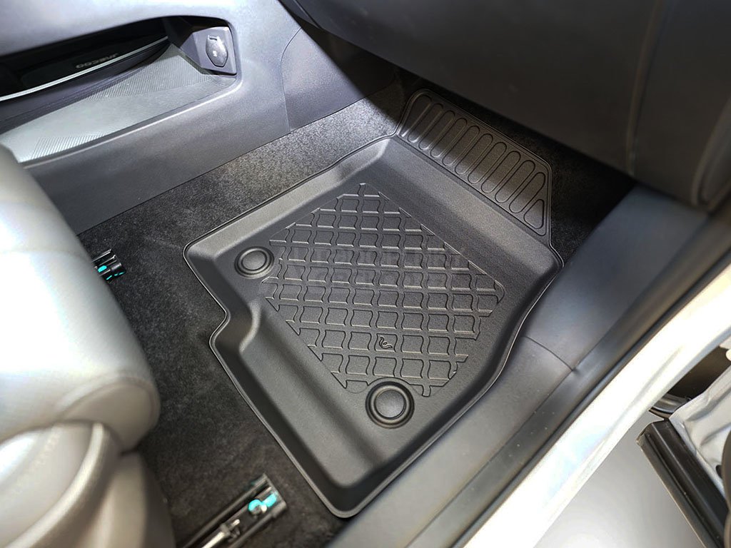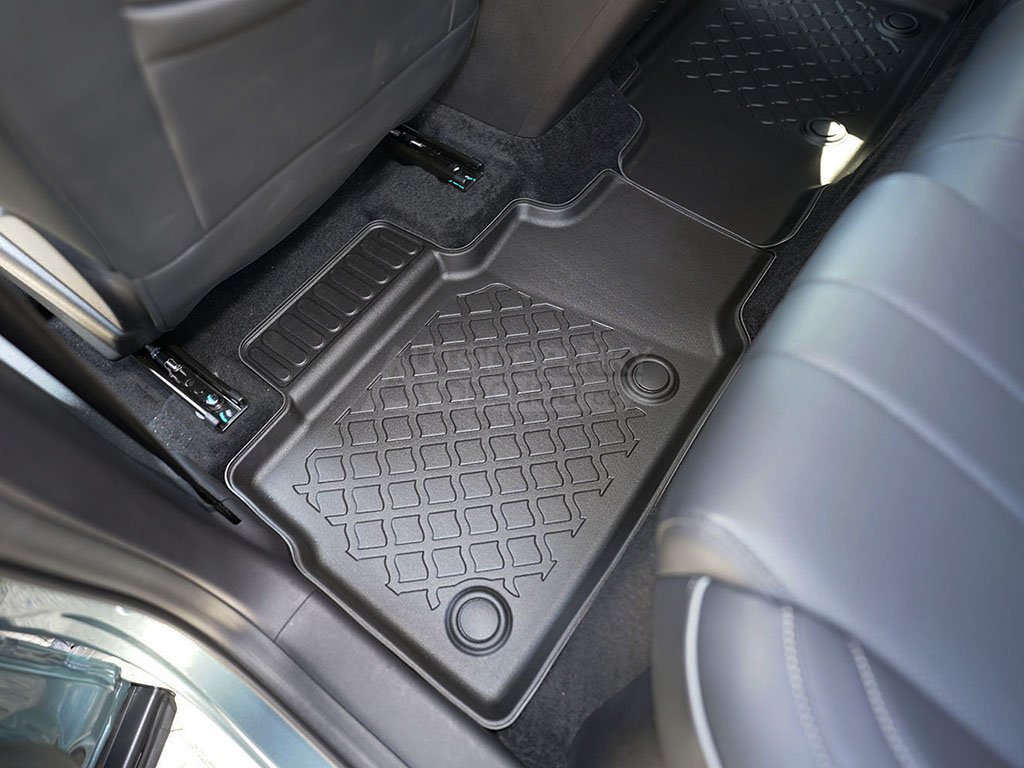 Přesně pasující autokoberce z pevnějšího a velmi odolného termoplastického materiálu s příměsí gumy využijete v jakémkoli ročním období, obzvláště pak od podzimu do jara. Velkou výhodou oproti čistě gumovým kobercům do auta je zvýšený 3 cm okraj, díky kterému i větší množství nečistot nebo vody ze sněhu neznečistí interiér vašeho vozu.