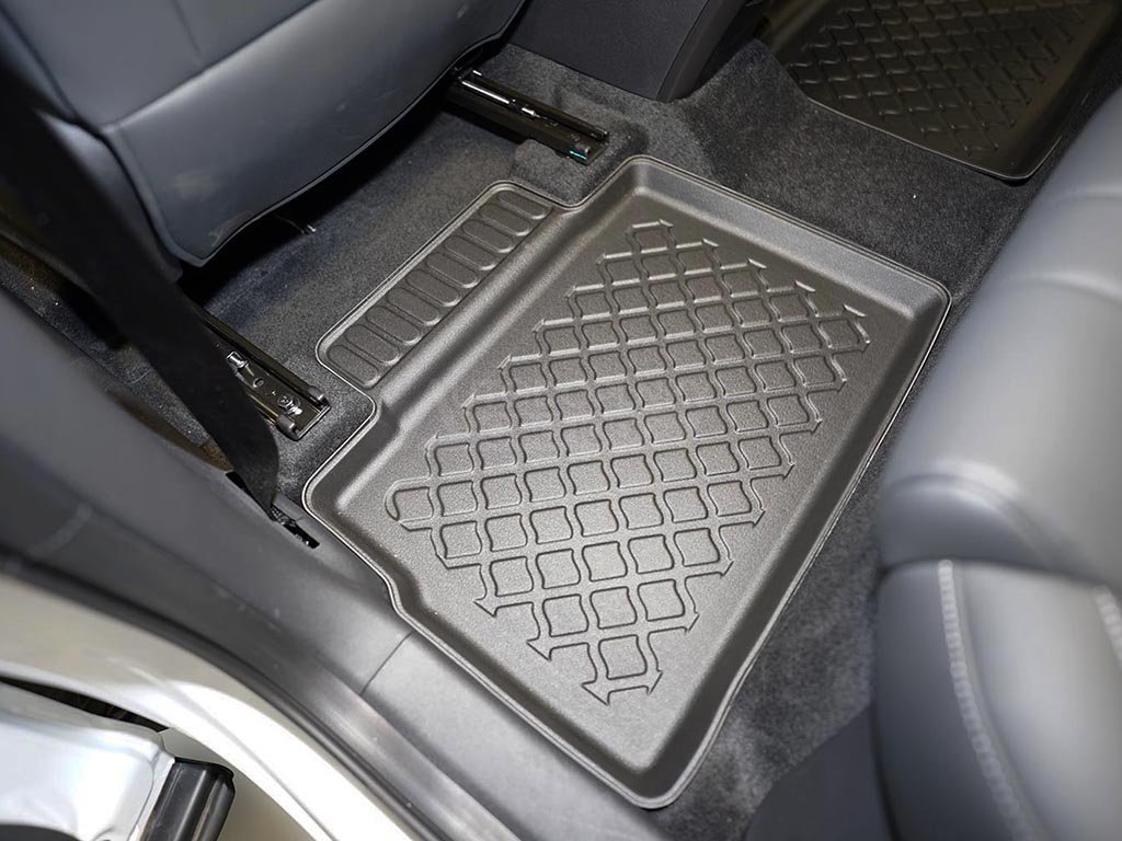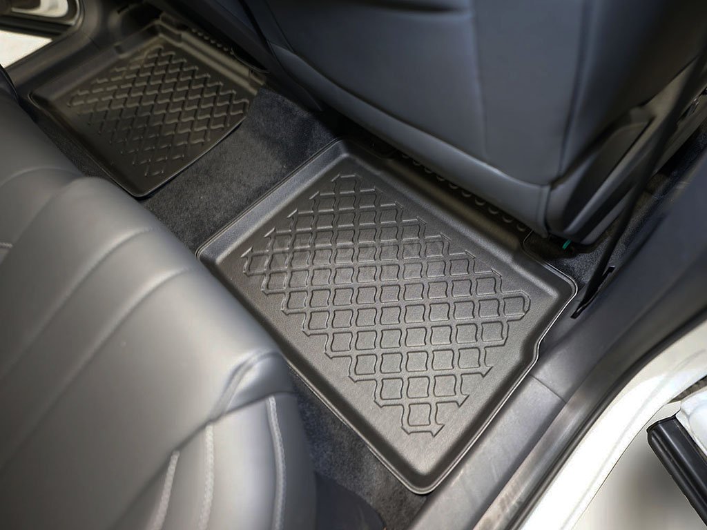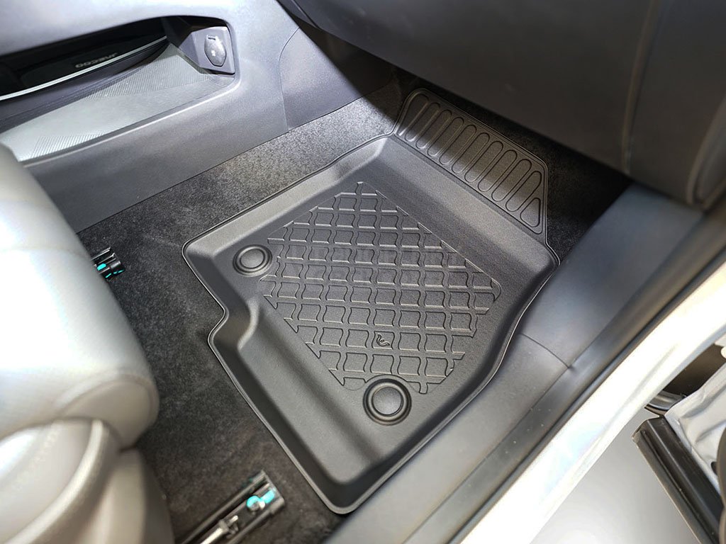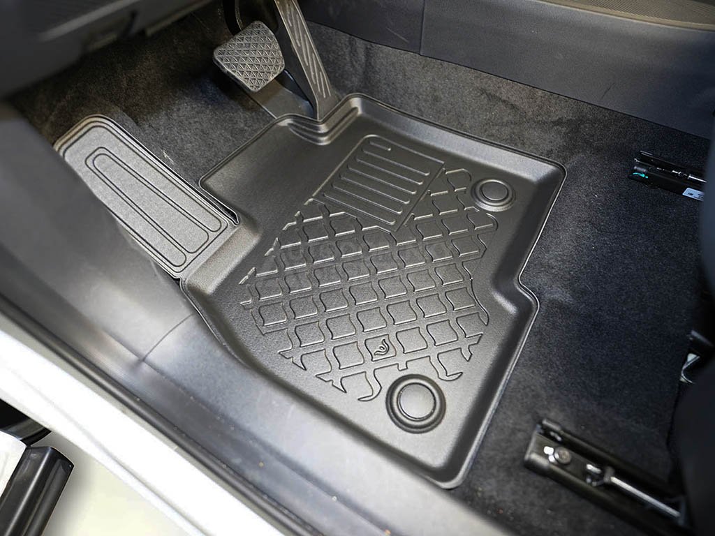 Přesně pasující autokoberce z pevnějšího a velmi odolného termoplastického materiálu s příměsí gumy využijete v jakémkoli ročním období, obzvláště pak od podzimu do jara. Velkou výhodou oproti čistě gumovým kobercům do auta je zvýšený 3 cm okraj, díky kterému i větší množství nečistot nebo vody ze sněhu neznečistí interiér vašeho vozu.