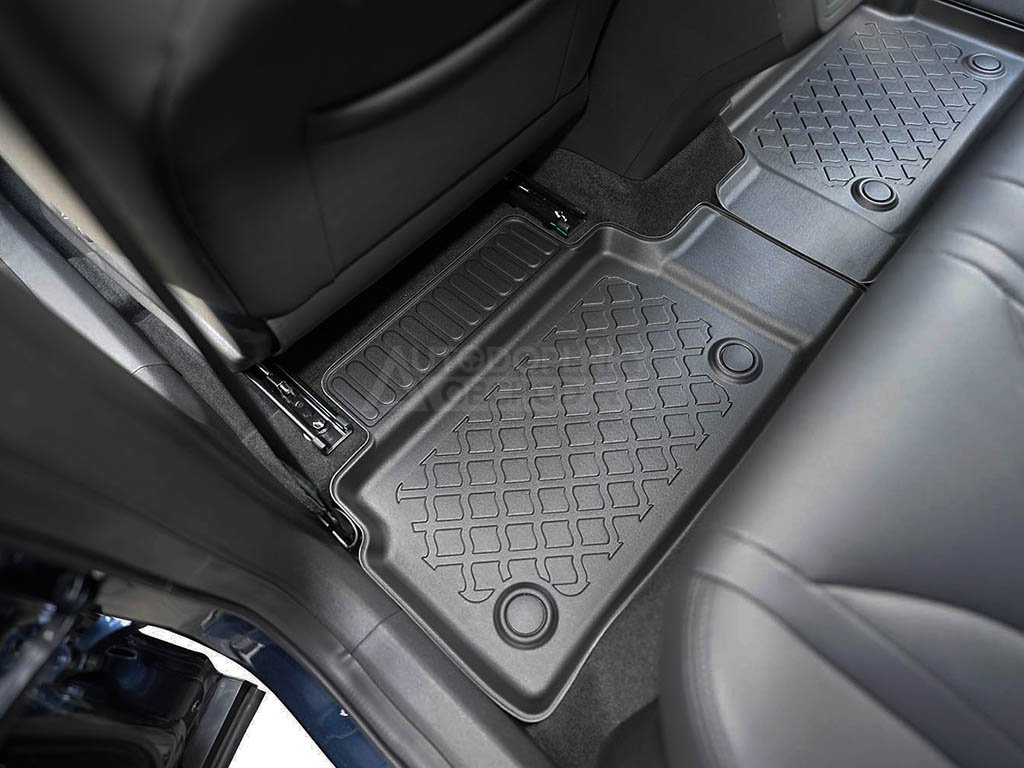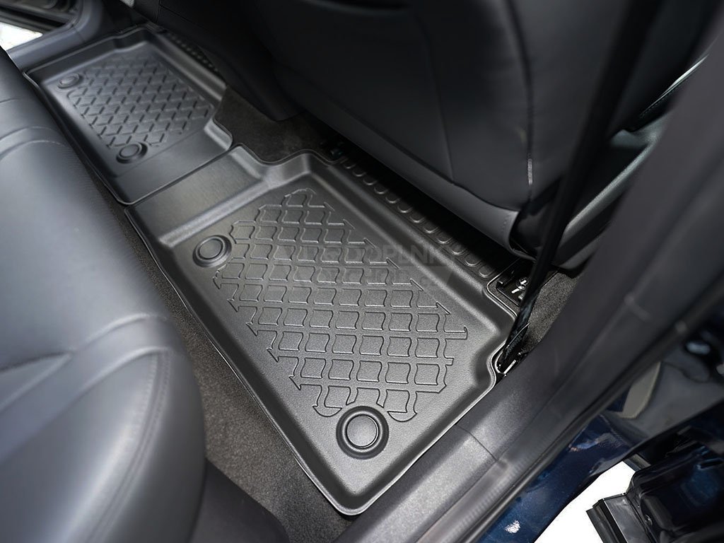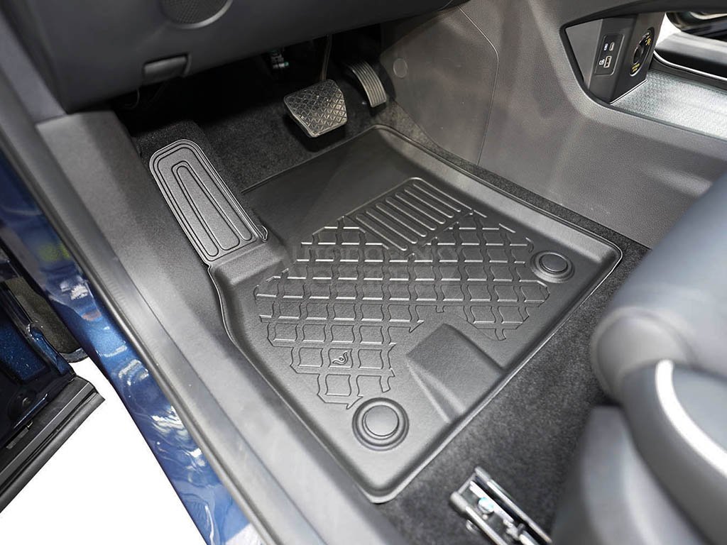 Přesně pasující autokoberce z pevnějšího a velmi odolného termoplastického materiálu s příměsí gumy využijete v jakémkoli ročním období, obzvláště pak od podzimu do jara. Velkou výhodou oproti čistě gumovým kobercům do auta je zvýšený 3 cm okraj, díky kterému i větší množství nečistot nebo vody ze sněhu neznečistí interiér vašeho vozu.