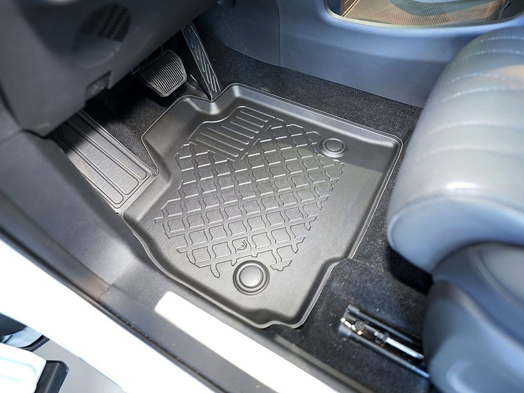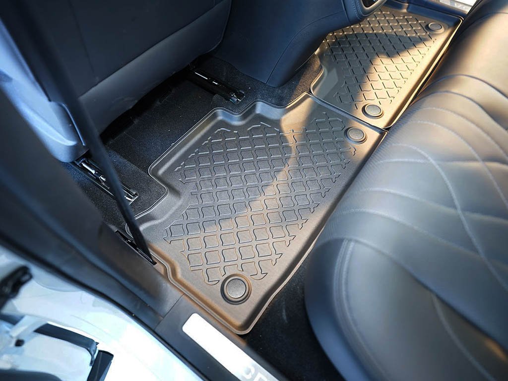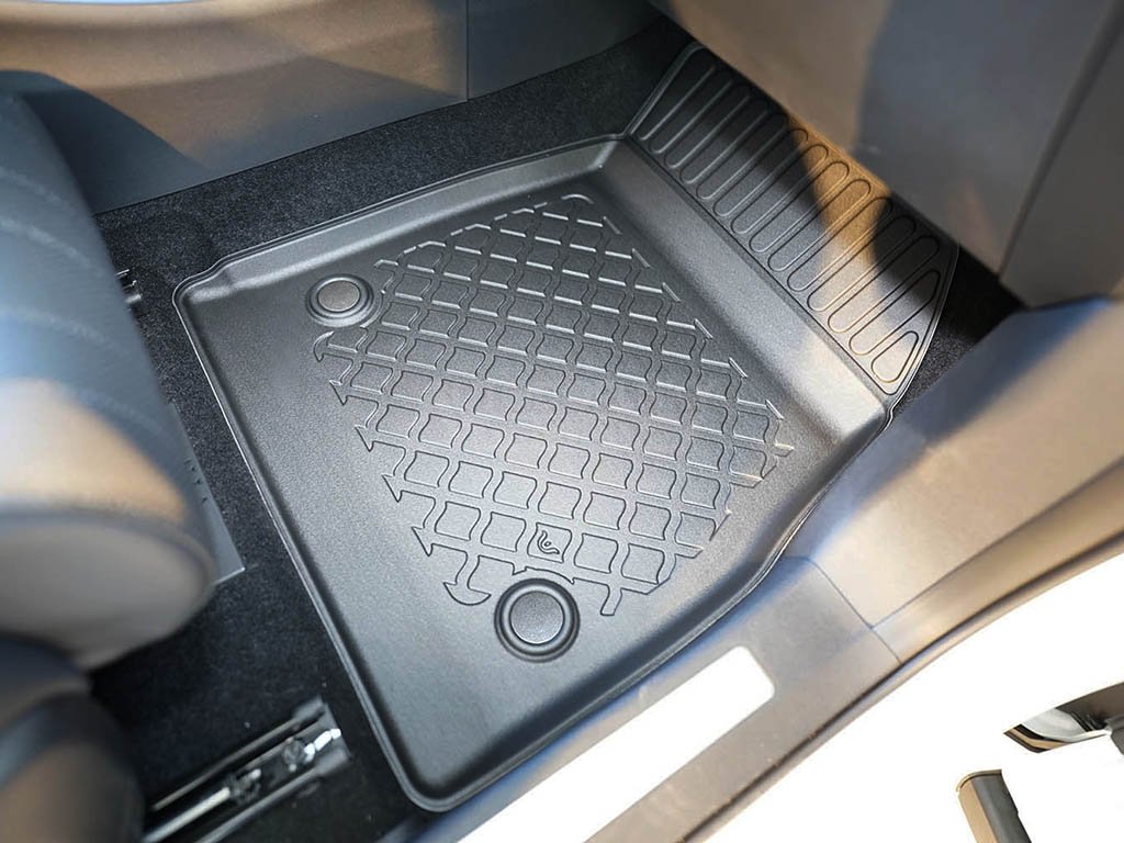Přesně pasující autokoberce z pevnějšího a velmi odolného termoplastického materiálu s příměsí gumy využijete v jakémkoli ročním období, obzvláště pak od podzimu do jara. Velkou výhodou oproti čistě gumovým kobercům do auta je zvýšený 3 cm okraj, díky kterému i větší množství nečistot nebo vody ze sněhu neznečistí interiér vašeho vozu.