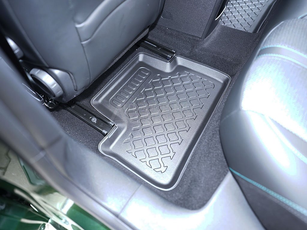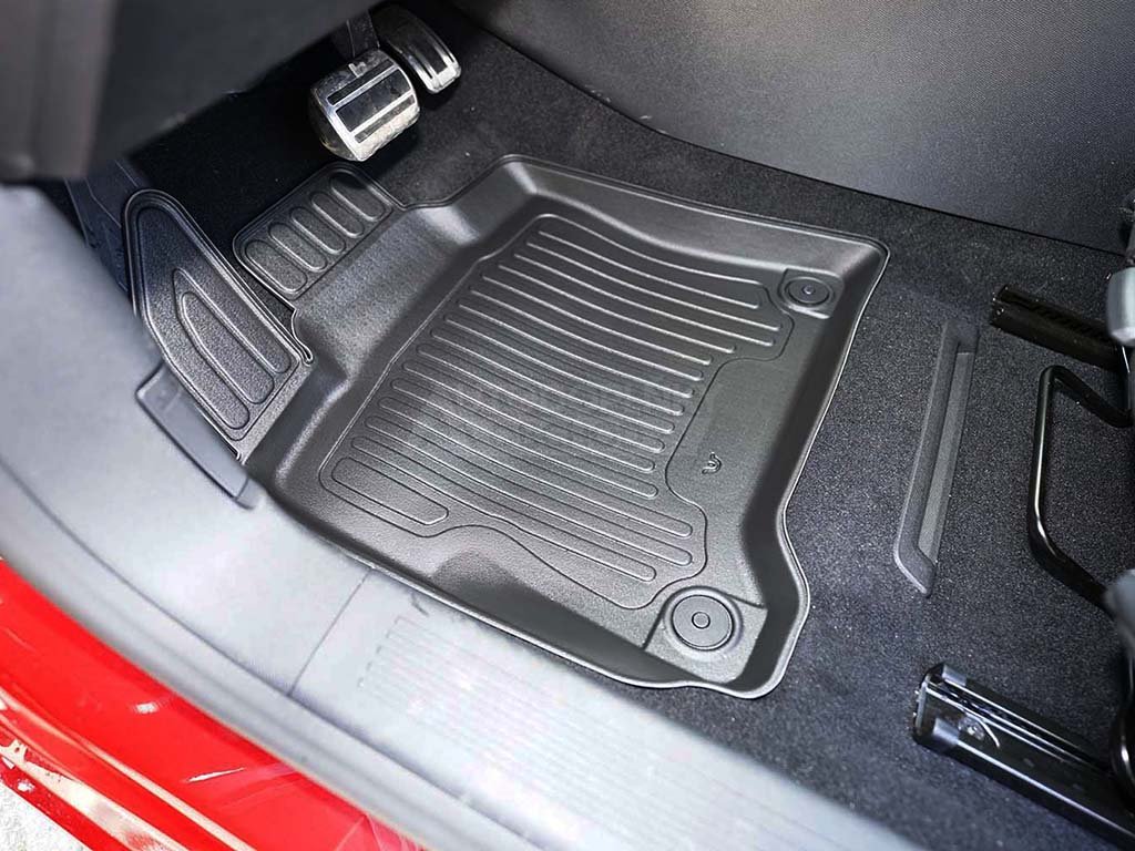 Přesně pasující autokoberce z pevnějšího a velmi odolného termoplastického materiálu s příměsí gumy využijete v jakémkoli ročním období, obzvláště pak od podzimu do jara. Velkou výhodou oproti čistě gumovým kobercům do auta je zvýšený 3 cm okraj, díky kterému i větší množství nečistot nebo vody ze sněhu neznečistí interiér vašeho vozu.