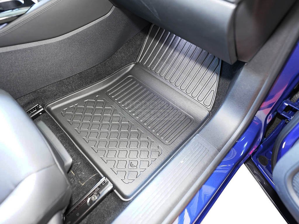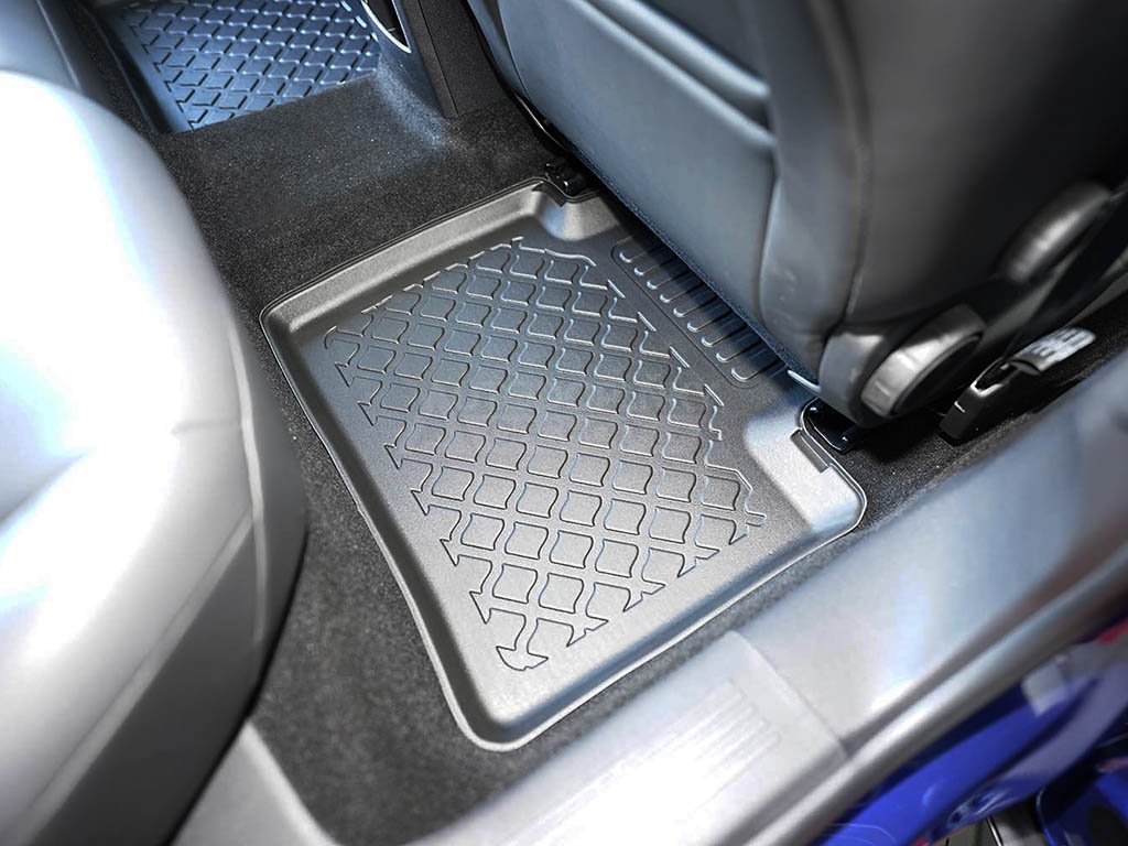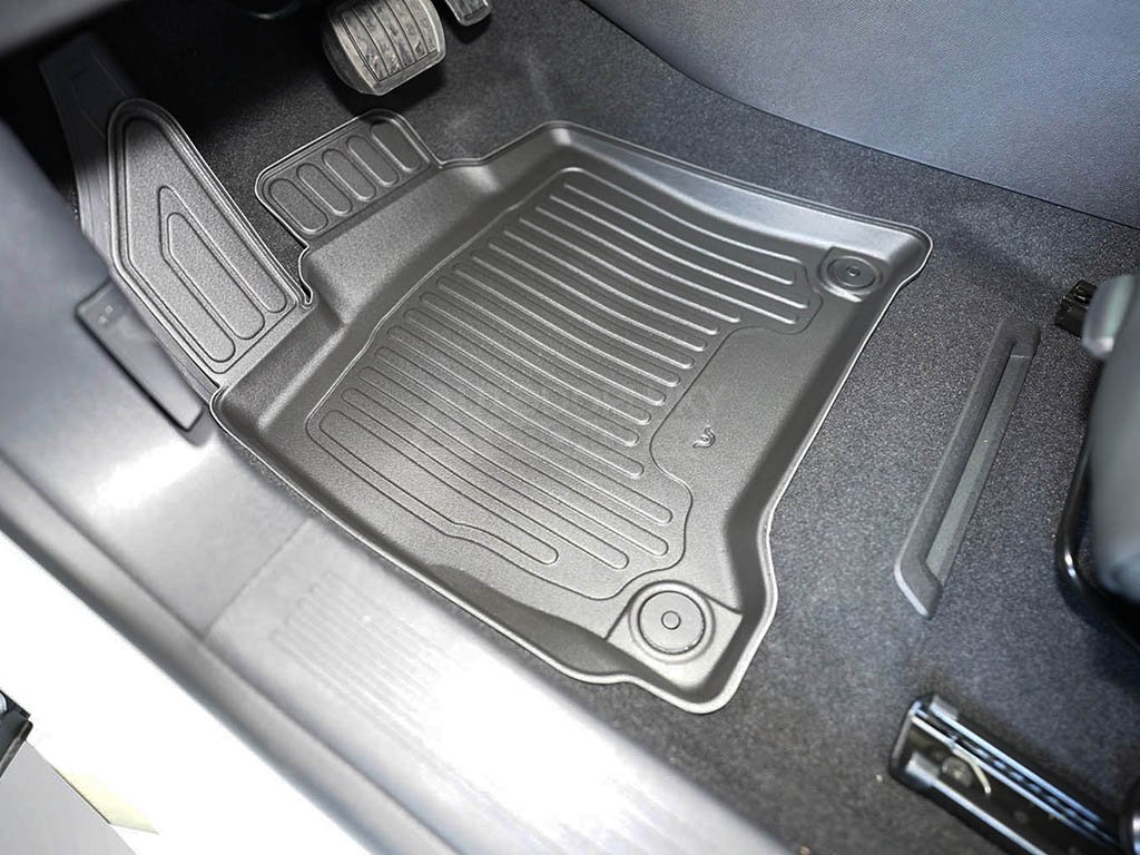 Přesně pasující autokoberce z pevnějšího a velmi odolného termoplastického materiálu s příměsí gumy využijete v jakémkoli ročním období, obzvláště pak od podzimu do jara. Velkou výhodou oproti čistě gumovým kobercům do auta je zvýšený 3 cm okraj, díky kterému i větší množství nečistot nebo vody ze sněhu neznečistí interiér vašeho vozu.