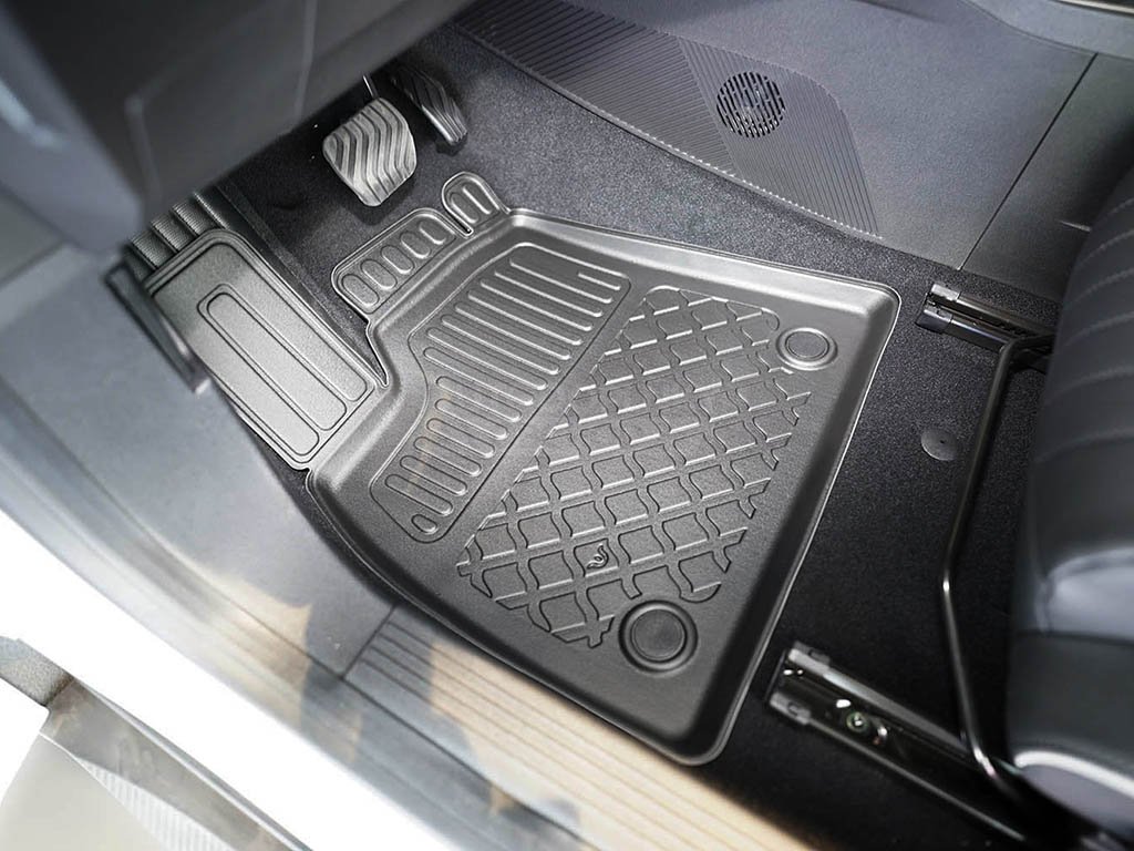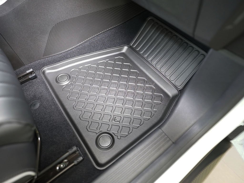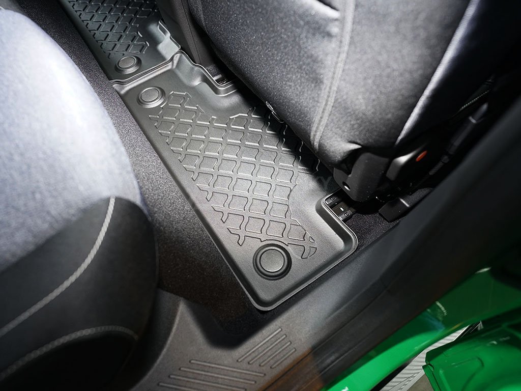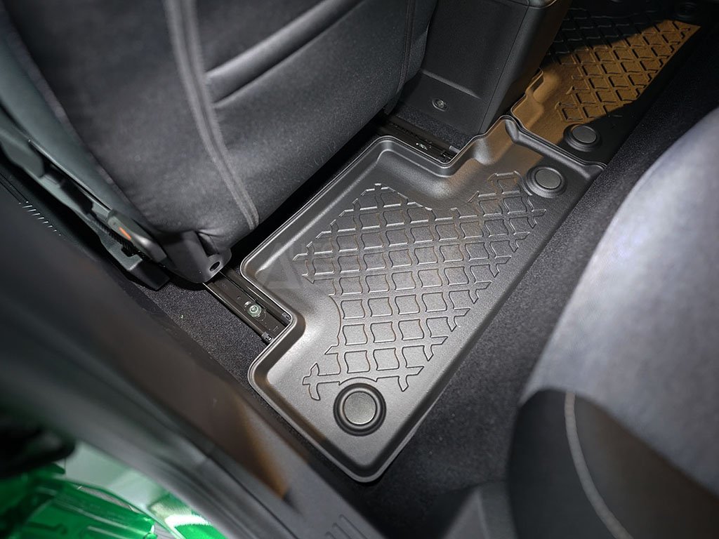 Přesně pasující autokoberce z pevnějšího a velmi odolného termoplastického materiálu s příměsí gumy využijete v jakémkoli ročním období, obzvláště pak od podzimu do jara. Velkou výhodou oproti čistě gumovým kobercům do auta je zvýšený 3 cm okraj, díky kterému i větší množství nečistot nebo vody ze sněhu neznečistí interiér vašeho vozu.