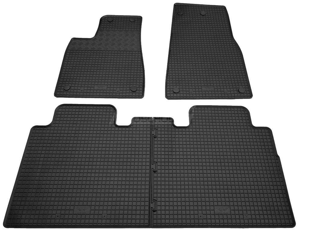 Přesně pasující gumové koberce pro Tesla Model X 2016-2026. Sada čtyř kusů rohoží s jednoduchou instalací. Praktický doplněk s protiskluzovým profilem chránící podlahu auta před vodou, sněhem i prachem.