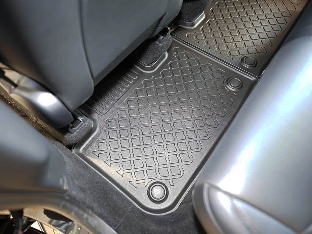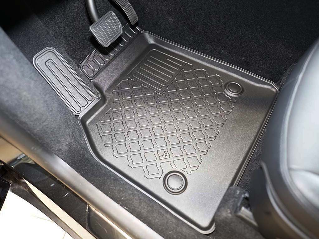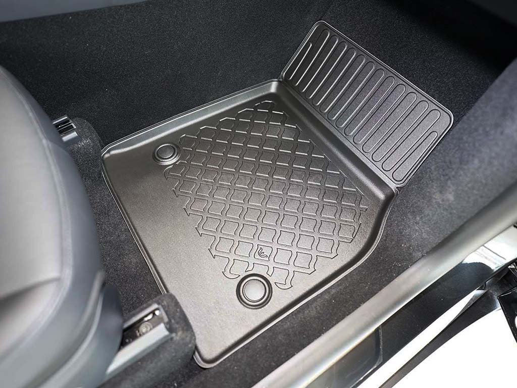 Přesně pasující autokoberce z pevnějšího a velmi odolného termoplastického materiálu s příměsí gumy využijete v jakémkoli ročním období, obzvláště pak od podzimu do jara. Velkou výhodou oproti čistě gumovým kobercům do auta je zvýšený 3 cm okraj, díky kterému i větší množství nečistot nebo vody ze sněhu neznečistí interiér vašeho vozu.