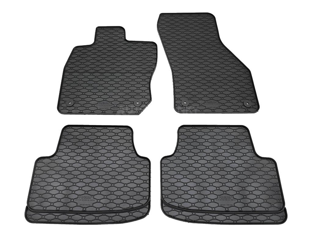 Přesně pasující gumové koberce pro VW Golf VIII 2020-2026 Mild-Hybrid. Sada čtyř kusů rohoží s jednoduchou instalací. Praktický doplněk s protiskluzovým profilem chránící podlahu auta před vodou, sněhem i prachem.