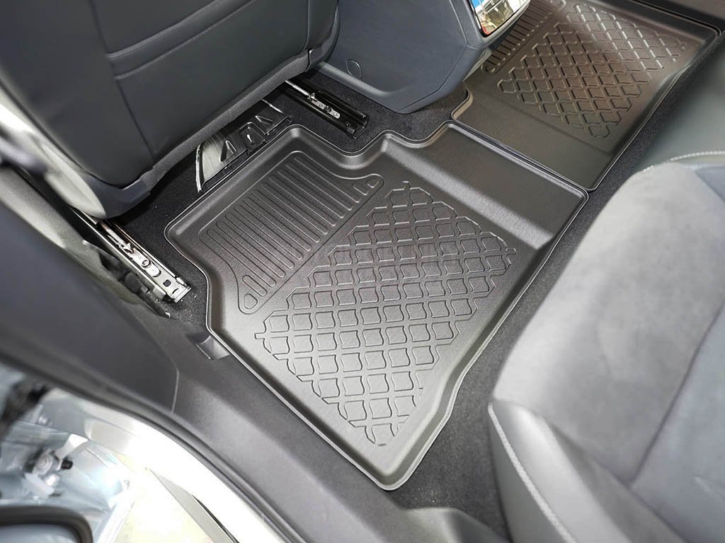 Přesně pasující autokoberce pro VW ID.7 2024-2025 se zvýšeným okrajem a protiskluzem. Sada praktických rohoží pasuje přímo na míru tohoto modelu auta. Materiál je pevnější ale lehký plast s příměsí gumy (tzv. TPE), aby bylo možné vyrobit jejich hlavní výhodu, zvýšenou 3 cm hranu, která vydrží trvale ve stejném tvaru a bude tak splňovat požadovanou funkci.
