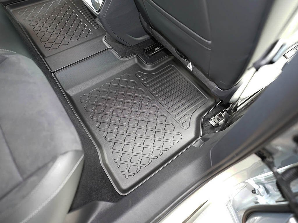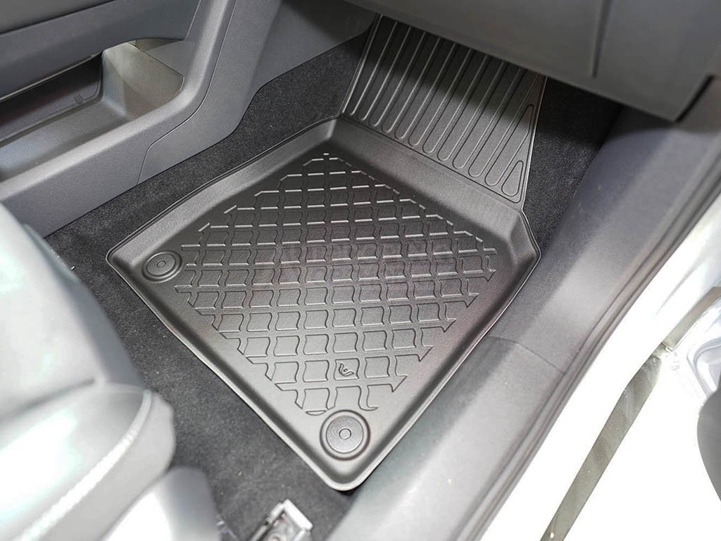 Přesně pasující autokoberce z pevnějšího a velmi odolného termoplastického materiálu s příměsí gumy využijete v jakémkoli ročním období, obzvláště pak od podzimu do jara. Velkou výhodou oproti čistě gumovým kobercům do auta je zvýšený 3 cm okraj, díky kterému i větší množství nečistot nebo vody ze sněhu neznečistí interiér vašeho vozu.