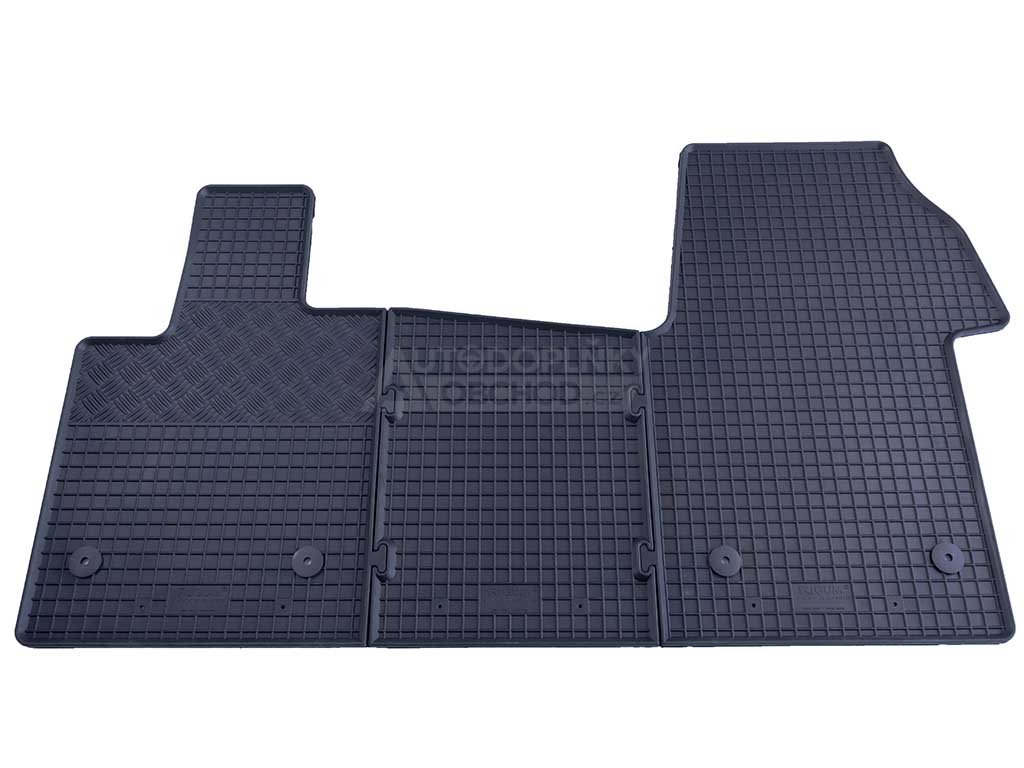 Přesně pasující gumové koberce pro VW T7 Multivan 2022-2026. Sada tří kusů rohoží s jednoduchou instalací. Praktický doplněk s protiskluzovým profilem chránící podlahu auta před vodou, sněhem i prachem.