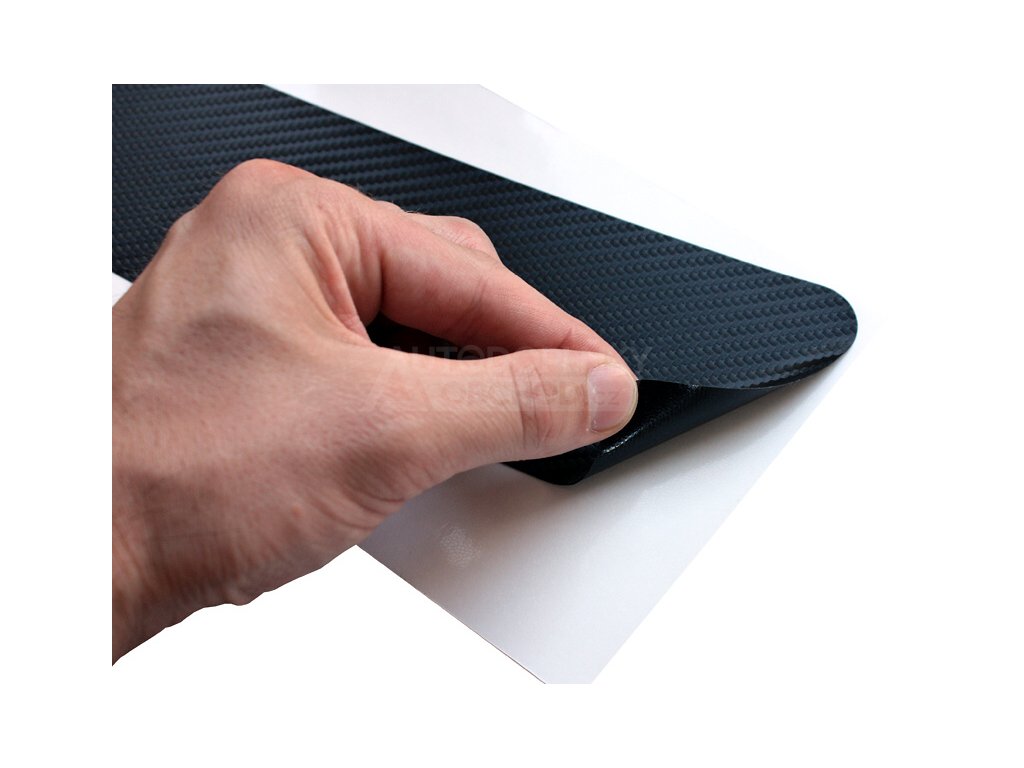 Karbonový pás pouze stáhnete z ochranné fólie (viz FOTO) a opatrně přimáčknete na očištěnou a odmaštěnou nákladovou hranu. Nemusíte se obávat, karbonová fólie bude pevně držet díky samolepící fólii ze spodní strany pásu.