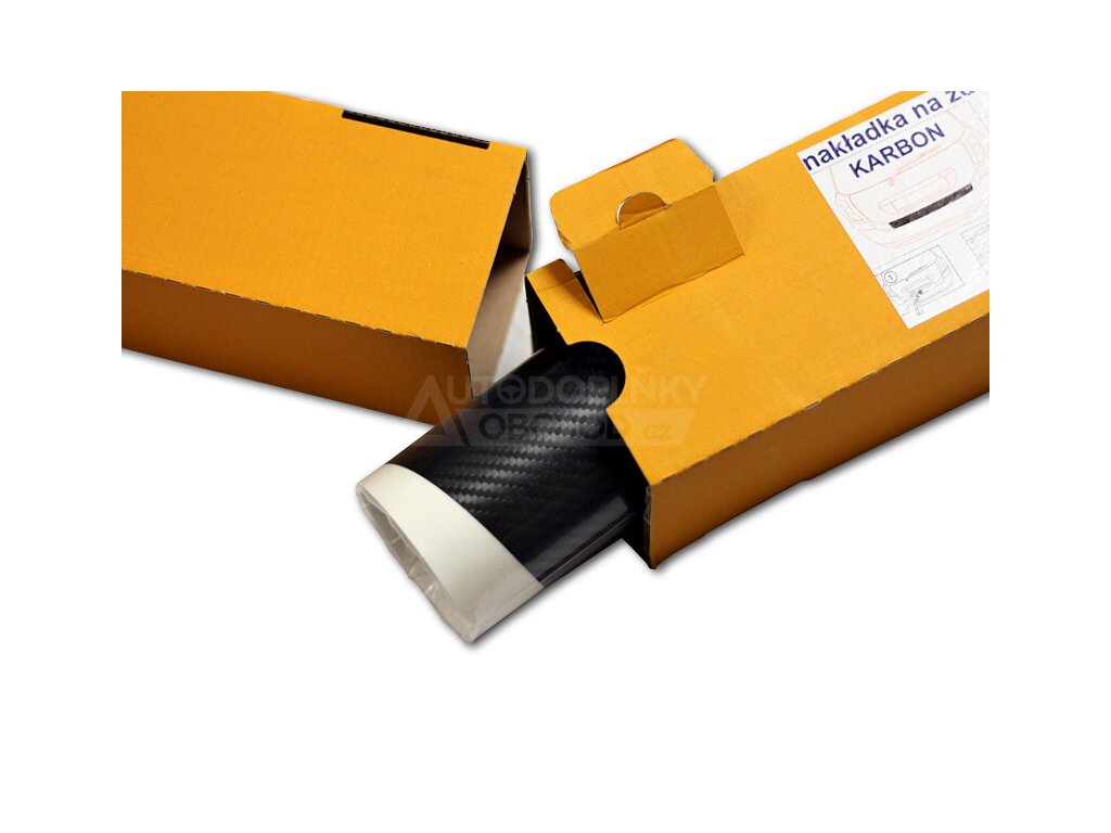 Tento kryt prahu pátých dveří je vyroben (přesně vyseknut) z kvalitní karbonové fólie 3M. Pozor, nejedná se o žádnou karbonovou imitaci nebo hladkou samolepku, pevná fólie má strukturovaný povrch, vytváří věrný vzhled pravého uhlíkového vlákna.
