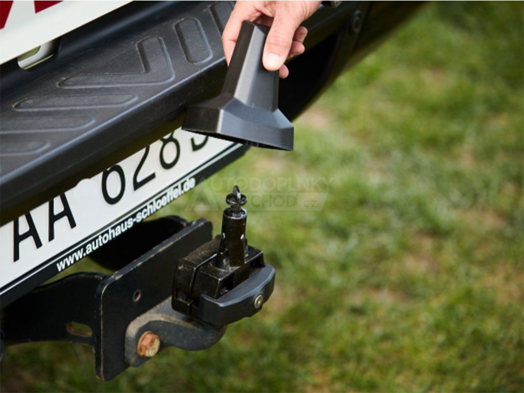 Díky unikátnímu uchycení na kouli (viz. fotogalerie) je montáž nosiče na tažné zařízení otázkou pár minut. Adaptér i nosič kol jsou zajištěné proti sundání dvěma zámky.
