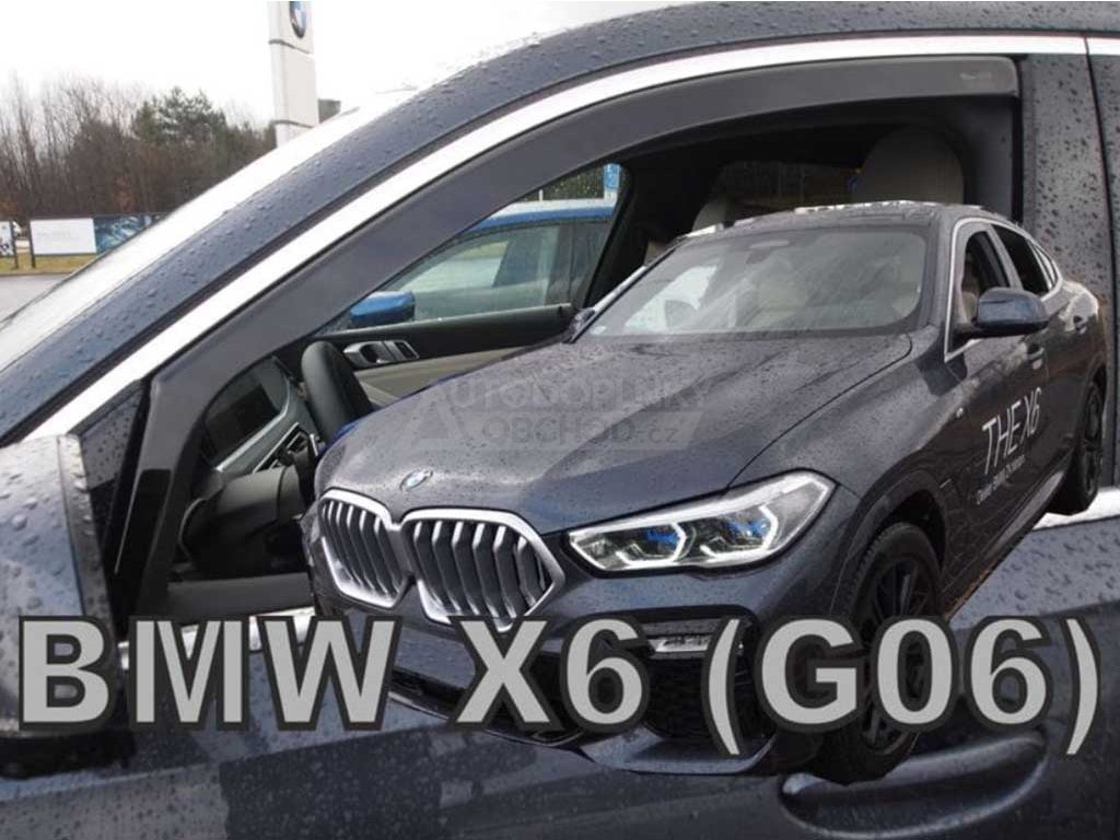 Sada 2 kusů estetických a hlavně praktických pomocníků nejen do sychravého počasí aneb přední ofuky oken v kouřové barvě pro BMW X6 G06 2020-2026. Doplňky zabraňující mlžení oken během deště a mlhy, vyrobené z kvalitního plexiskla specialisty – firmou HEKO.