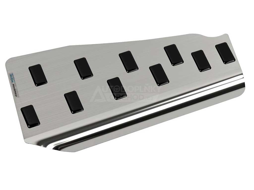 Opěrka chránící nášlapný prostor u levé nohy řidiče aneb praktický i stylový doplněk interiéru Mitsubishi Eclipse Cross 2018-2026. Z kvalitní nerezové oceli vyrábí odborníci na autodoplňky – společnost ALU–FROST.