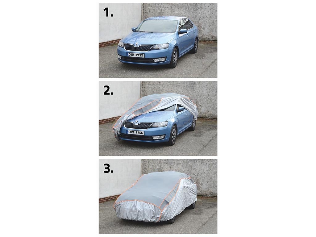 Plachtu na auto jednoduše upevníte za spodek vozu všitou gumou. Složení plachty do praktické brašny na zip je otázka minutky.