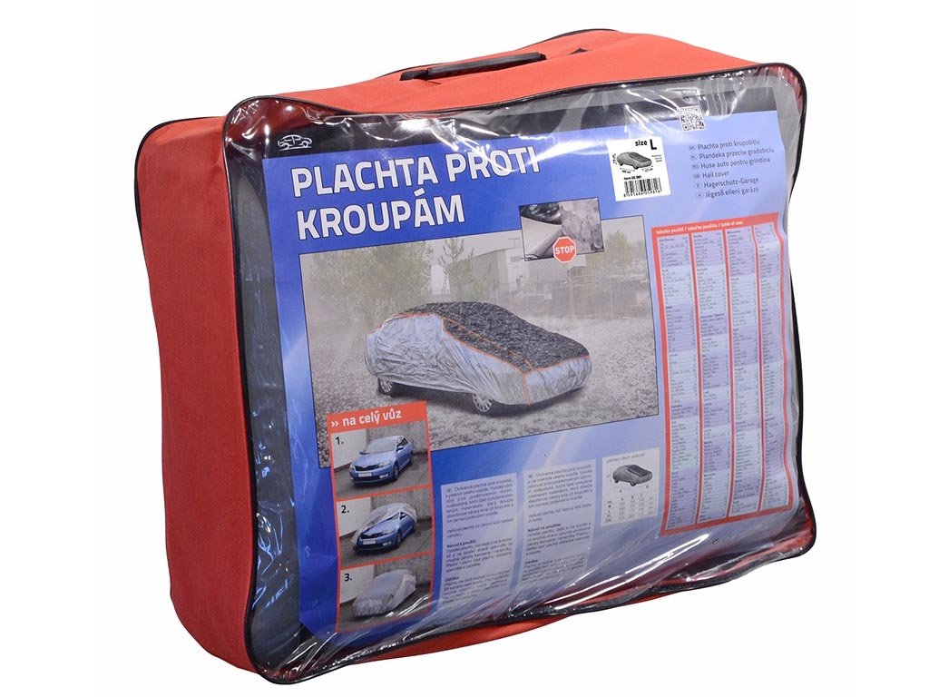 Ochranná plachta proti kroupám na celý vůz, která zabraňuje poškození laku auta kroupami o velikosti až 12 mm.Velikost L, rozměr 480 x 177 x 119cm. Materiál: EVA, nylon.