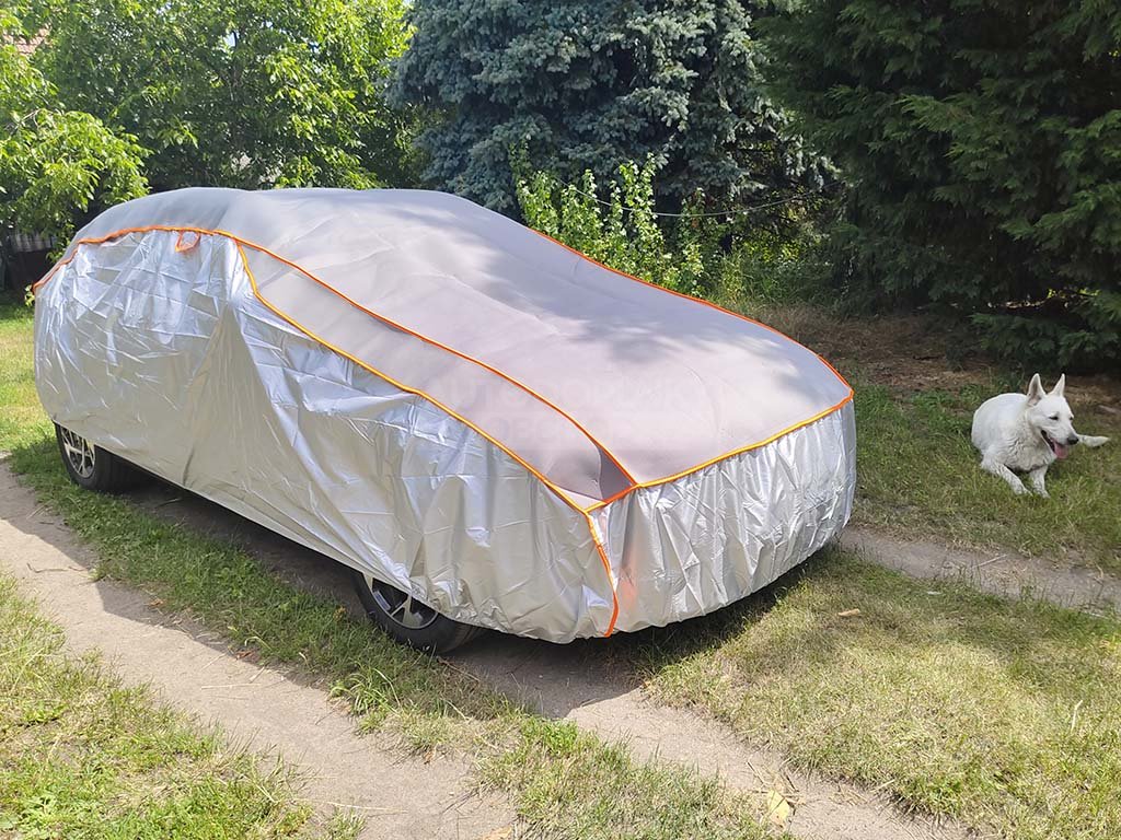 Ochranná plachta proti kroupám se zesílenou vrchní vrstvou spolehlivě váš vůz před kroupami o velikosti až 12 mm. Krycí plachta samozřejmě chrání i lak vašeho vozu před slunečním svitem nebo prachem, popřípadě nečistotami ze stromů nebo ptáků.