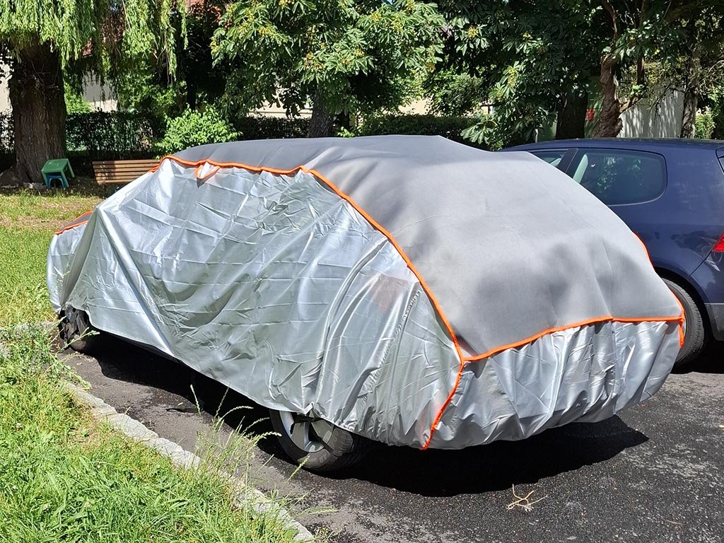 Ochranná plachta proti kroupám se zesílenou vrchní vrstvou spolehlivě váš vůz před kroupami o velikosti až 12 mm. Krycí plachta samozřejmě chrání i lak vašeho vozu před slunečním svitem nebo prachem, popřípadě nečistotami ze stromů nebo ptáků.