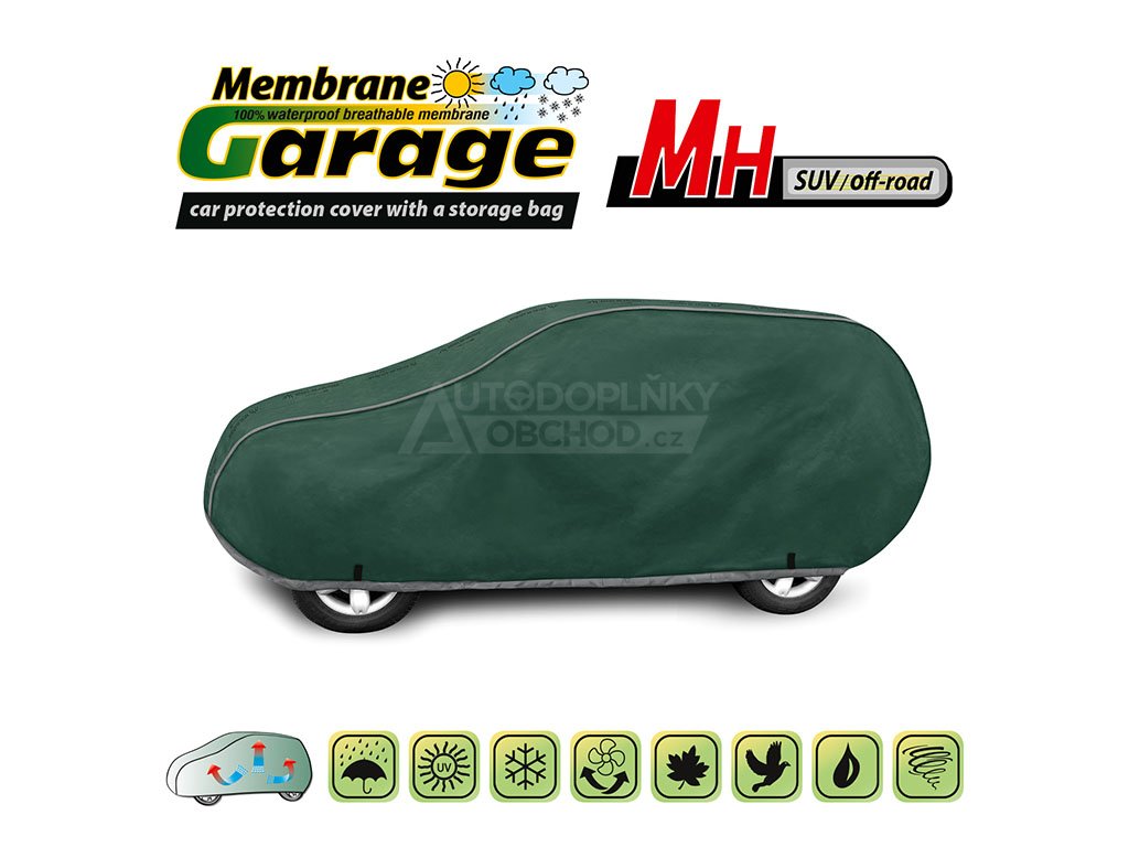 Nepromokavá plachta na celý vůz s paropropustnou membránou, vyrobena z velmi odolného materiálu. Plachta poskytuje ochranu jak proti silnému dešti, tak prachu, pylu nebo námraze. Je tak použitelná ve všech ročních obdobích.