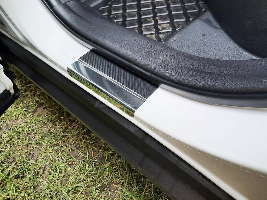 Sada 4 kusů prahových lišt z kvalitní nerezové oceli potažené karbonem pro Toyota RAV4 V 2019-2025. Stylové, zároveň ale praktické doplňky chránící auto před poškrábáním, odřením i jiným poškozením. Vyrábí prověřená firma ALU–FROST.