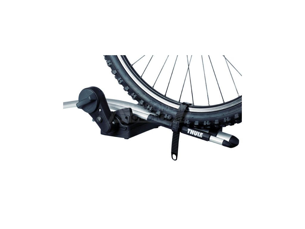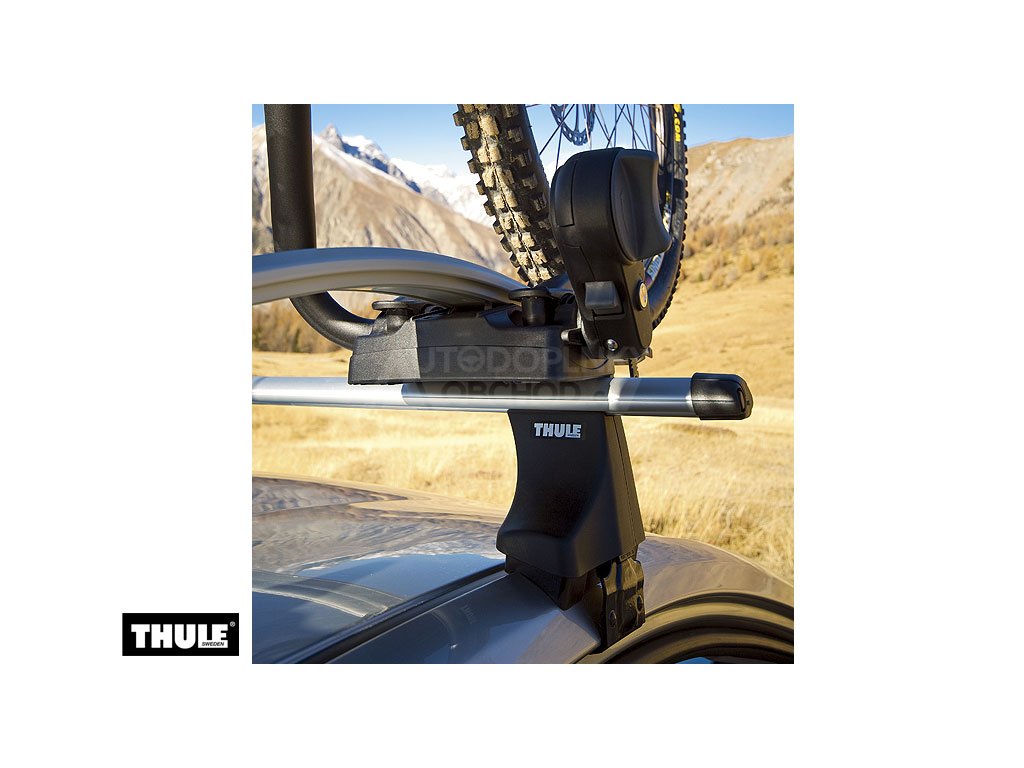 Kolo je chráněno před pádem pomocí rozšířené dolní čelisti úchytu. Nosič snadno namontujete pomocí přibalených T-adaptérů do T-drážky (20 x 20 mm) střešních příčníků. Pro montáž na ocelové tyče je navíc součástí balení U-adaptér.