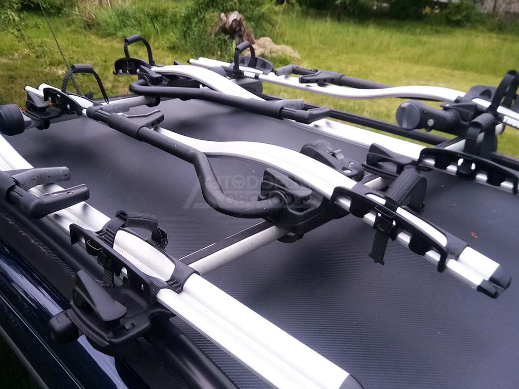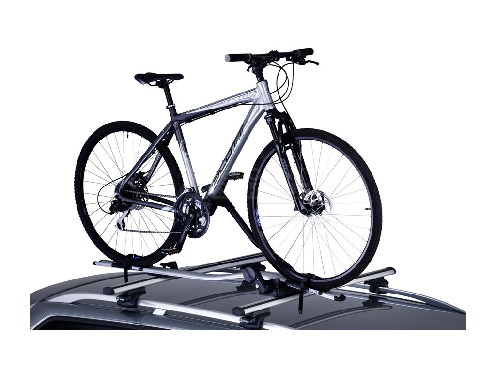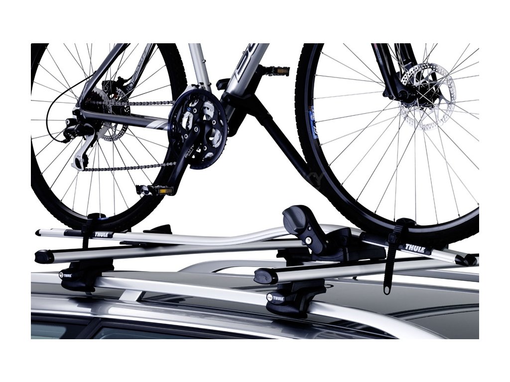 Střešní nosič kol Thule ProRide 591 se vrací na scénu. Díky jedinečnému designu držáku rámu a žlábku pro kola automaticky usadí kolo na místě, když je připevňujete.