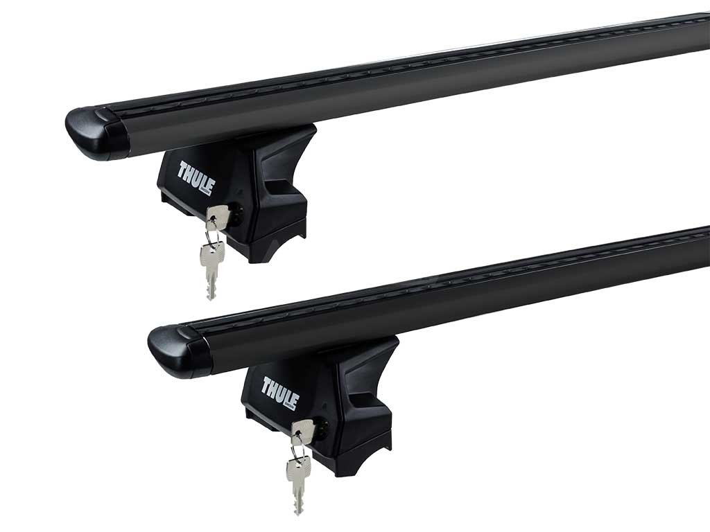 Uzamykatelné střešní nosiče s hliníkovými aerodynamickými černými tyčemi délky 120 cm, přesně pasující na BMW 5 F11 2010-2017 Touring. Kvalitní certifikované řešení švédského výrobce Thule připravující auto na montáž nosičů kol či střešních boxů.