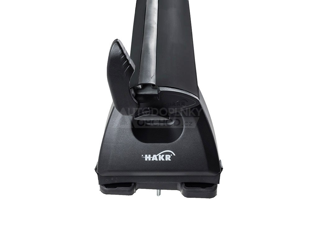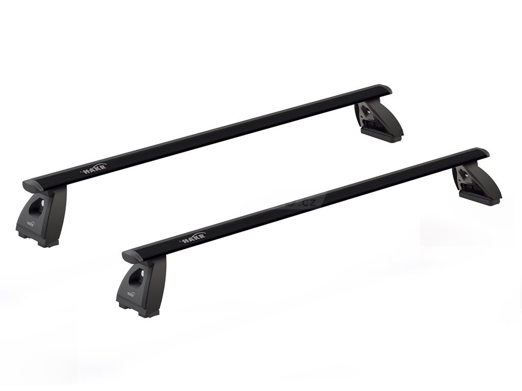 Nová generace uzamykatelných střešních nosičů s tichými ALU WING BLACK PROFILE aerodynamickými tyčemi délky 120 cm, pasující na vozy s montážními body ve střeše. Kvalitní certifikované řešení českého výrobce HAKR připravující auto na montáž nosičů kol či střešních boxů.