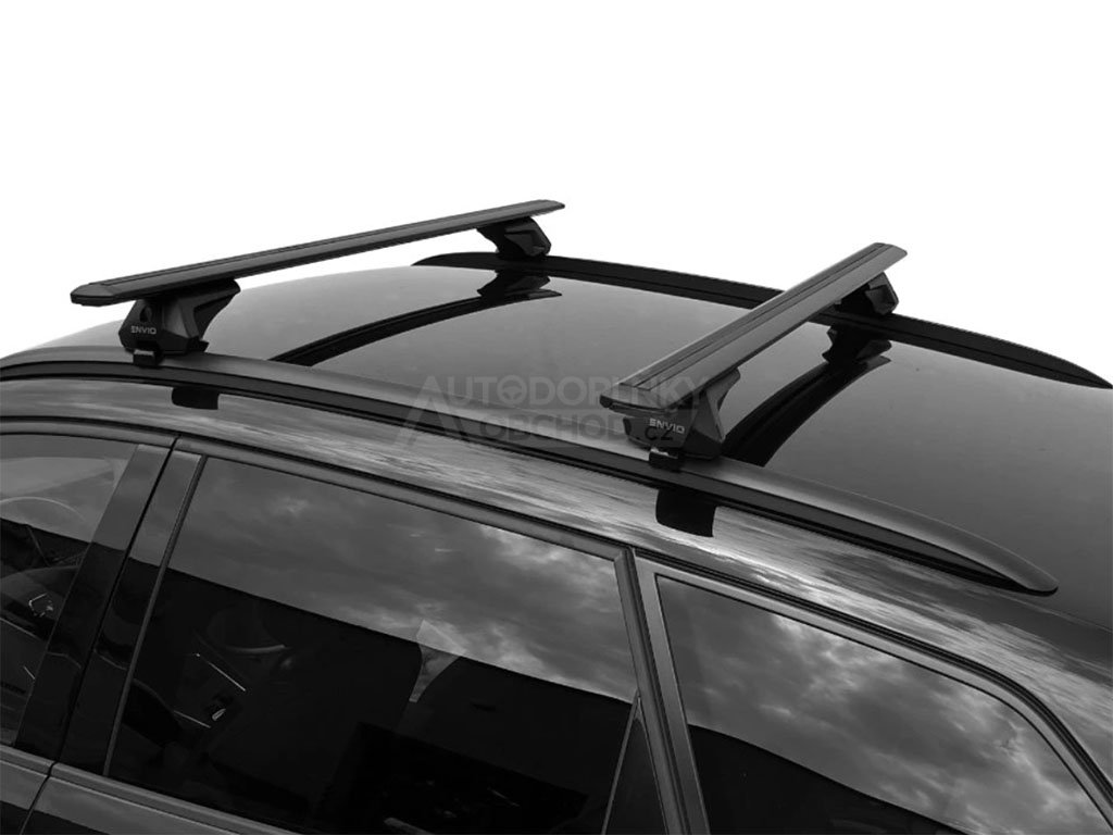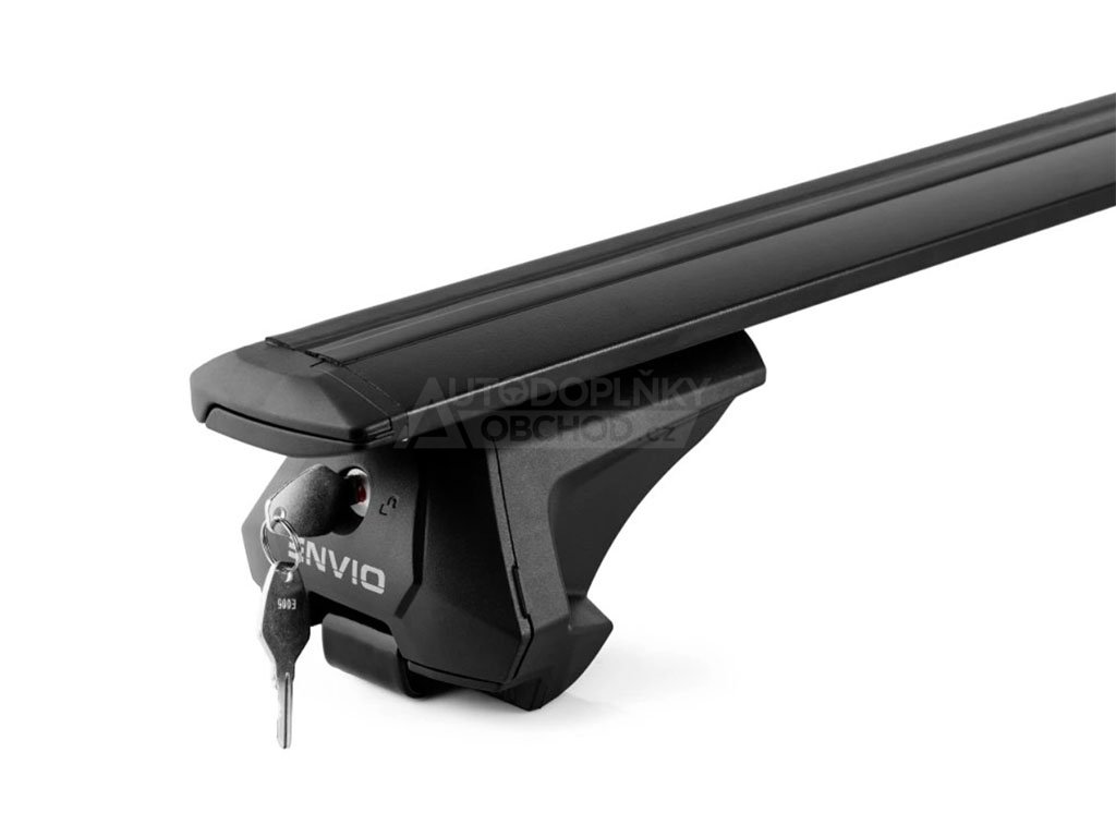 Černé příčníky s vylepšenými aerodynamickými vlastnostmi délky 120 cm ideální pro instalaci střešních boxů, nosičů kol, lyží a dalšího příslušenství.