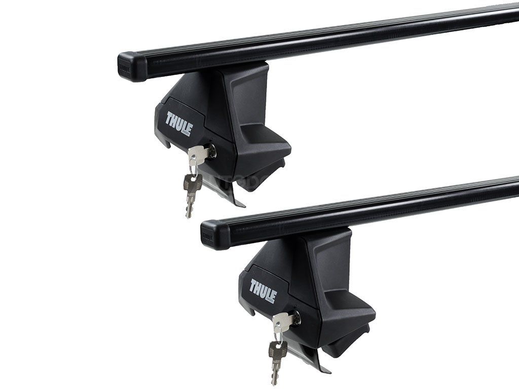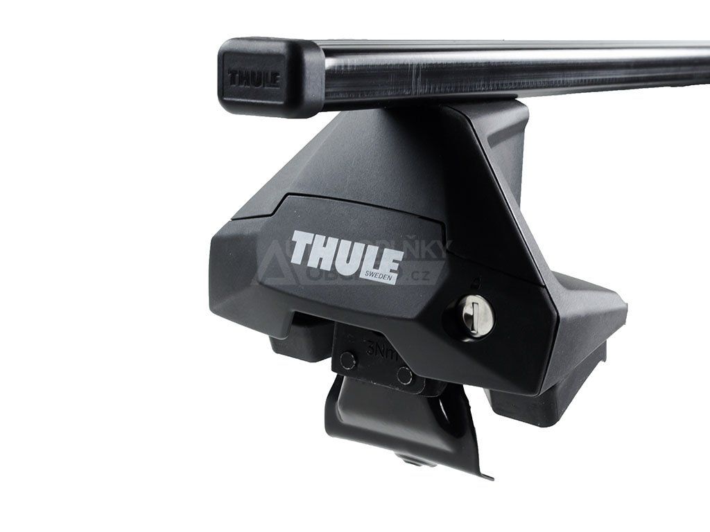 Uzamykatelné střešní nosiče s praktickými ocelovými tyčemi délky 135 cm, přesně pasující na KIA K4 2026- Hatchback. Kvalitní certifikované řešení švédského výrobce Thule připravující auto na montáž nosičů kol či střešních boxů.
