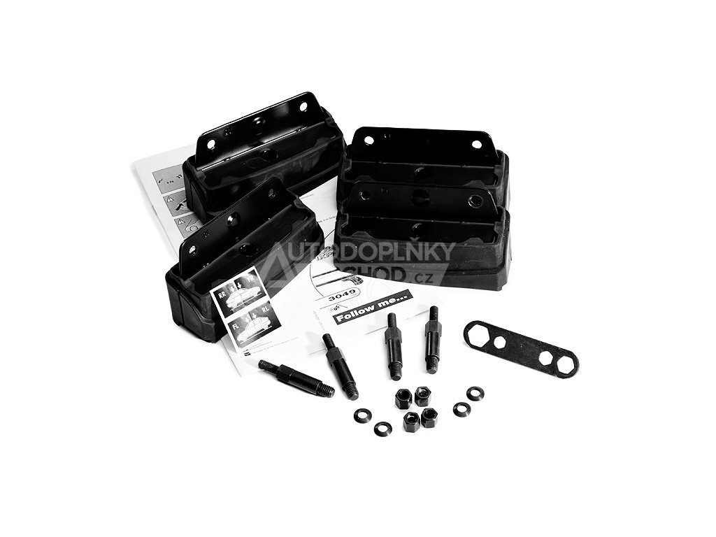 Sada je předem sestavená a díky zaobleným posuvným patkám (až o 60 mm) skvěle pasuje. Upínací systém nosné patky zakrývá plastová krytka, obsahující zámek pro uzamčení patek k nosiči.