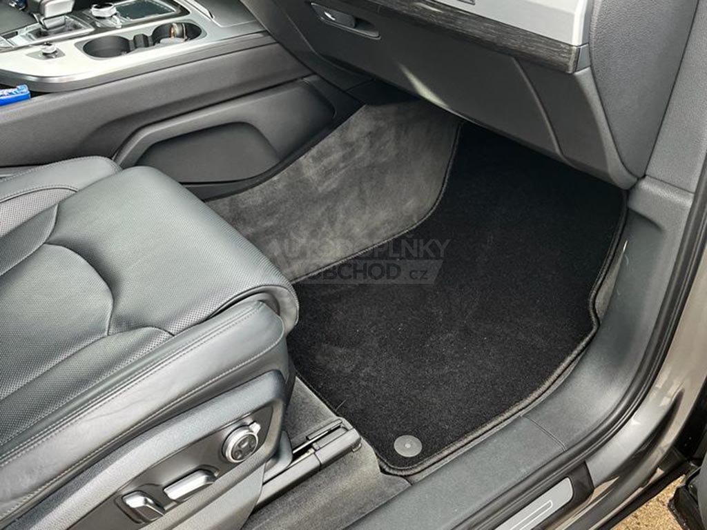Přesně pasující textilní koberce pro Audi Q7 II 2015-2026. Sada čtyř kusů rohoží s jednoduchou instalací. Praktický doplněk vyrobený v Čechách z kvalitního materiálu chránící podlahu auta před prachem a jinými nečistotami.