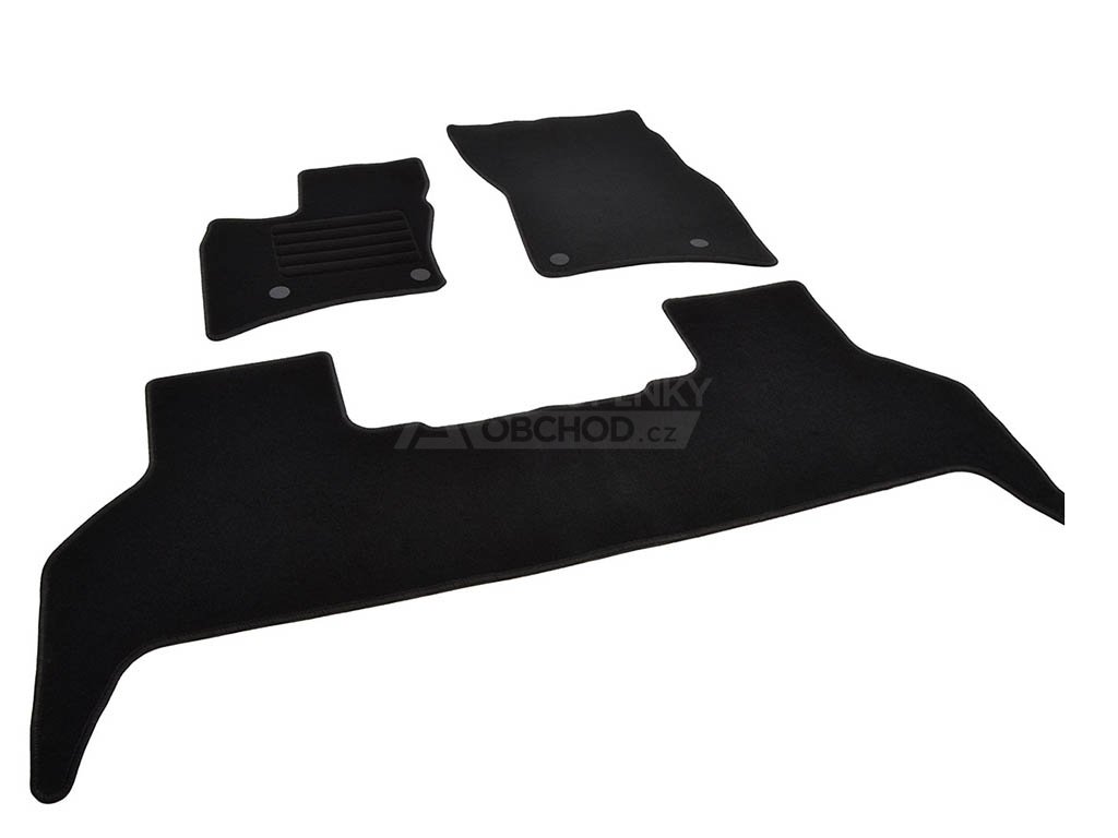 Přesně pasující textilní koberce pro Land Rover Defender 110 2020-2026. Sada tří kusů rohoží s jednoduchou instalací. Praktický doplněk vyrobený v Čechách z kvalitního materiálu chránící podlahu auta před prachem a jinými nečistotami.